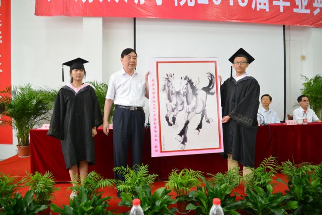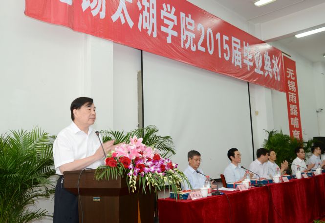徐从才校长对2015届全体毕业生给予殷切希望,他说,青年是一个人成长成才的黄金时期,大学生思维活跃、精力旺盛、朝气蓬勃,富有创新激情和创新活力,爱因斯坦26岁提出著名的狭义相对论;牛顿24岁创立了微积分,27岁成为教授;马克思29岁时同恩格斯共同发表《共产党宣言》;华罗庚依靠自学数学,25岁发表震惊世界的数论专著。同时,青年杰出人才往往也是引领时代的创业先锋。比尔盖茨年仅20岁创立微软公司;乔布斯21岁创办苹果电脑公司;谢尔盖布林25岁创办谷歌公司。今天中国互联网三巨头BAT(百度、阿里、腾讯)的创始人李彦宏、马云、马化腾初创时,不也是“草根”? “海阔凭鱼跃,天高任鸟飞。”徐校长勉励毕业生们勤于学习,不断进取,大胆创新创业,奋勇争先,坚韧不拔,弘扬太湖精神,争取人生最大的成功。母校是毕业生们坚强的后盾,母校会永远关注毕业生们的成长与成才,欢迎毕业生们常回母校看看,与母校共同分享成功和喜悦。