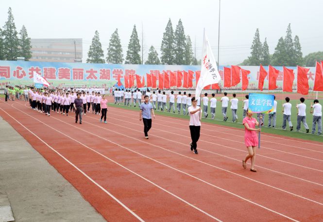 30日上午,运动会拉开帷幕。无锡市滨湖区委常委、政法委书记唐国良,市体育局副局长汪克强,市体管中心副主任张宏,市科协副主席钱俊方,市教育局高教处处长高群,市人大代工连处长陈荣文,荣巷街道主任郑天宇,梅园派出所所长费健,校党委书记金秋萍,校领导闵光泰、陈志龙、张凯、何宏金、丁涛、陈晓东出席运动会开幕式并在主席台就座。常务副校长闵光泰主持开幕式。