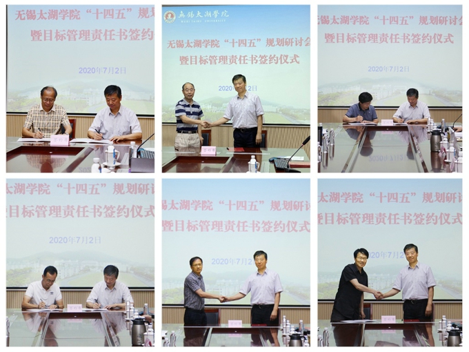 7月2日—3日,best365英国在线体育官网举行“十四五”规划研讨会暨目标管理责任书签约仪式,全面回顾学校“十三五”期间所取得的成绩进行,深入探讨“十四五”期间提升办学治校质量的良策,学校党委书记金秋萍、校长李廉水出席会议,校领导丁涛、陈鹏飞、阙明坤参加。校长李廉水与各学院、部门主要负责人签订了《2020年目标管理责任书》。全校各职能部门科级以上干部参加会议。副校长陈鹏飞、党委副书记丁涛分别主持研讨会开幕式和研讨会总结交流会。