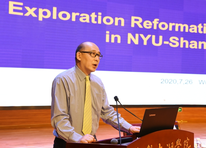 上海纽约大学副校长丁树哲回顾了上海纽约大学的发展历程,介绍了学校拥有的国际学生和教师队伍,并对学校在人才培养、专业建设上的许多创新举措作了说明。他指出,所有的中外合作办学的从业者都经历过探索的过程,都肩负着创新的使命,在当前长三角一体化发展逐步推进的过程中,上海纽约大学将进一步发挥自身优势、融入这一进程中。