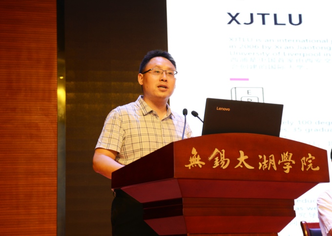 西交利物浦大学党委副书记谢波作了《敢于成为领导者:西浦的梦想与探索》的专题报告。谢波副书记介绍了西浦特色的融合式教育理念、育人模式、导师体系,并对西浦与太仓合作的新模式作了简要说明。他指出西浦探索从1.0版本到2.0版本,贯彻的理念是融合式教育,未来西浦将推动国际化专业精英培养模式的创新、国际化融合式精英培养模式的创建,打造未来新型大学概念和校园的示范、大学与社会共享学习创新创业卓越中心,成为先进教育理念和实践的传播者。