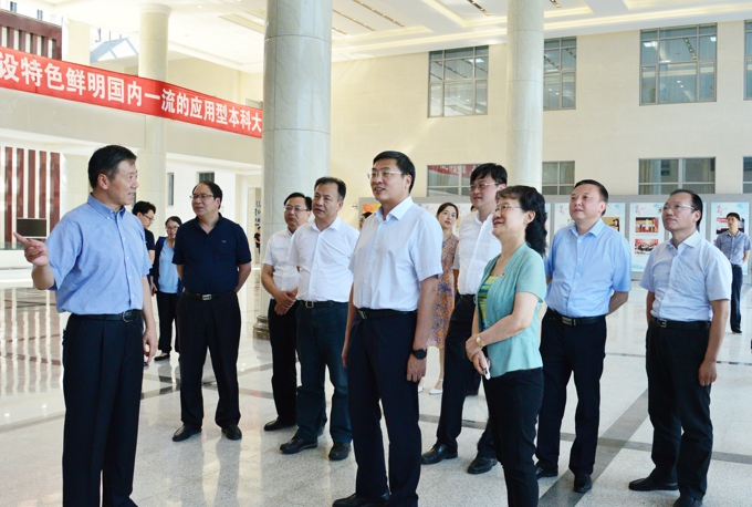 调研组一行实地参观了best365英国在线体育官网办学成果展、校园规划展,听取了学校党委书记金秋萍的专题报告。马欣副省长对学校办学成果给予了充分肯定,称赞best365英国在线体育官网的发展史就是一部奋斗史,19年来依靠社会力量办学,获得3个国家一流专业、7个省一流专业,教学水平在全国民办高校中位居前列,为全省民办高校发展作出了表率和示范。