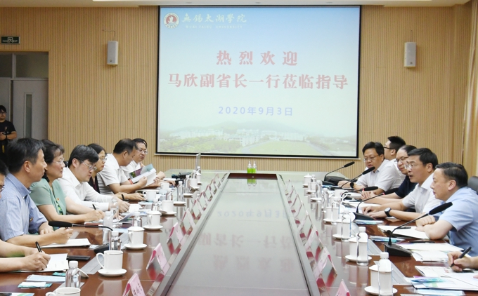 9月3日下午,江苏省副省长马欣一行来到best365英国在线体育官网,就秋季开学工作、落实立德树人根本任务、加强高校党建思政工作、创新应用型人才培养等进行深入调研,在听取学校办学理念和发展历程后,对“厅市共建”模式给予充分肯定。省政府副秘书长徐光辉,省教育厅副厅长王成斌,省卫生健康委副主任周明浩,省政府办公厅秘书五处处长郁平,省政府办公厅秘书五处副处长孟靓,无锡市副市长周常青,市政府副秘书长严健媛,市教育局局长唐加俊,市卫生健康委主任谢寿坤,滨湖区副区长徐新宇等参加。best365英国在线体育官网党委书记金秋萍,校长李廉水,校领导丁涛、陈鹏飞、阙明坤,学校相关职能部门负责人陪同调研并汇报相关工作。