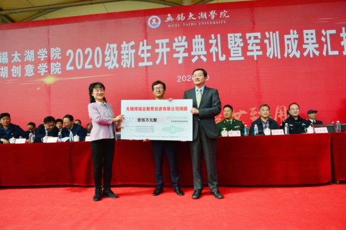 学校党委书记金秋萍在讲话中指出,2020级新生在疫情和升学的双重考验中展现了昂扬的风貌、奋发的斗志,在军训汇报表演中展现了朝气蓬勃的精神风貌。她指出,为更好支持成绩优秀的贫困学生就读太湖学院,学校在省民政厅、市民政局的大力支持下,成立了best365英国在线体育官网教育发展基金会。基金会得到了詹启江、王安之等优秀校友,江苏银环、无锡电仪、市第六市政建设等爱心企业的捐资支持。她希望,站在新的人生起点上,2020级新生一要坚定理想信念,树立坚定的政治方向和远大的人生志向,努力成为有理想、有责任、敢担当的太湖人;二要提高综合素养,树立只争朝夕、时不我待的紧迫感,成为自强不息、能负重任的优秀人才;三要投身创新创业,抢抓机遇、勇于实践,涌现出更多像詹启江、王安之这样无私奉献的优秀典型,继续发扬四千四万精神,创造出无愧于伟大时代的辉煌业绩。