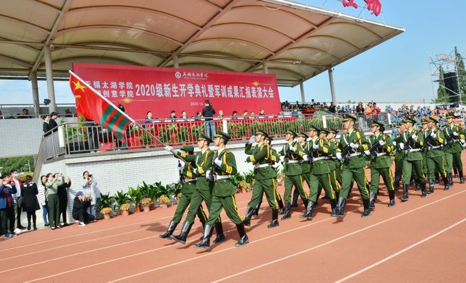 会上,来自全国28个省、市、自治区的5000多名新生以饱满的精神、昂扬的风貌汇报了半个月的军训内容。在奏唱国歌后,伴随激昂的《中国人民解放军进行曲》,副校长陈鹏飞检阅了受训队伍。各受训方阵依次通过主席台,同学们步履铿锵、目光坚定、身姿挺拔,展现了太湖学子的自信与风采!随后,受训新生进行了分列式、军体操、长棍术等表演,展示了军训取得的丰硕成果。