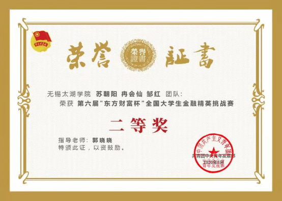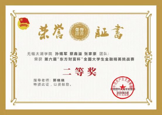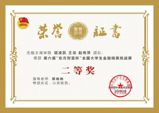 共青团中央青年发展部主办,全国学校共青团研究中心、东方财富信息股份有限公司联合承办的第六届“东方财富杯”全国大学生金融精英挑战赛近期落下帷幕。主办方公布的获奖名单中,best365英国在线体育官网共有908名学生参加此次比赛,102人晋级省赛并组成45支队伍,经过激烈的角逐比拼,最终3支队伍成功晋级国赛并全部荣获二等奖。
