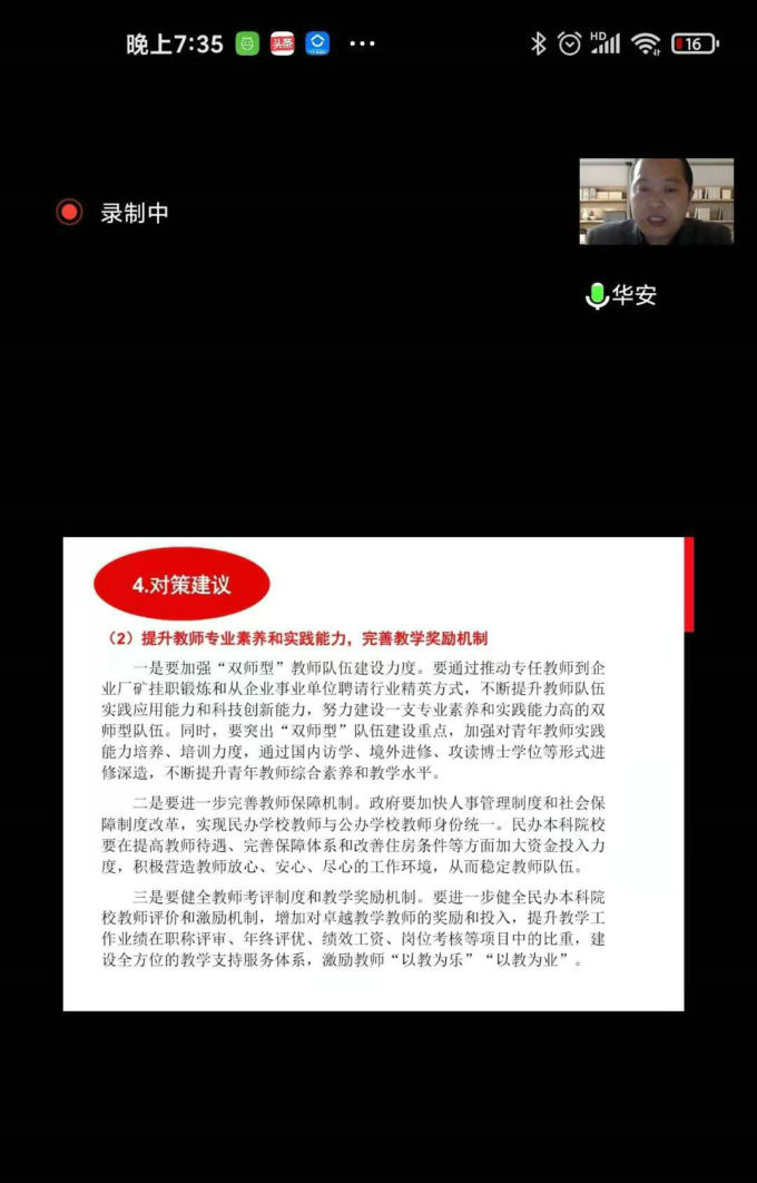 论坛上,彭华安博士向与会听众作了近1小时的专题报告。他指出,提升教学质量是江苏省民办本科院校发展的着力点,应当树立“以学生为中心”理念,提升教师专业素养和实践能力,提高就业质量,增强民办本科院校吸引力。他结合实际案例,介绍了当前民办本科院校教学质量现状,并对相关影响因素进行了剖析,为与会人员带来了一场广度与深度俱佳的学术盛宴,受到与会人员的一致好评。