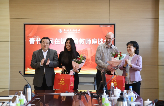 学校理事长金秋萍介绍了近年来学校发展成效。她指出,best365英国在线体育官网作为无锡第一所应用型本科高校,创办20年来取得了成效显著,3个专业获批国家级一流本科专业,15个专业获批江苏省一流专业,在中国2020软科同类大学排名中位列全省同类高校之首。太湖学院国际化水平与日俱增升,去年,在多个国际教育合作项目的基础上,太湖学院苏格兰学院揭牌,这是全国600多所应用型本科院校中唯一与世界著名高校合作的中外合作机构,填补了无锡市高等教育独立国际化办学的空白。此次春节期间,学校不仅为外教准备了“春节礼包”和中国式春节活动,让外教们学做中国菜、学习剪窗花,感受中国年的浓浓暖意,还将组织他们到无锡知名景点参观,感受无锡这座工商名城、江南盛地的魅力,领略无锡风光、太湖美景。