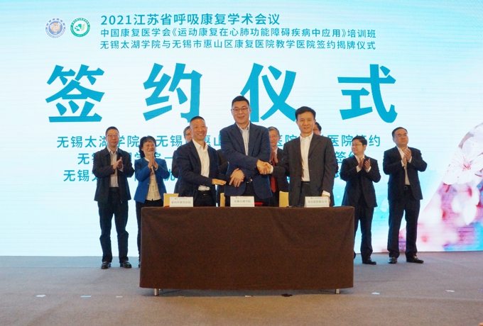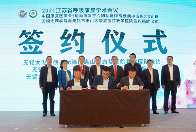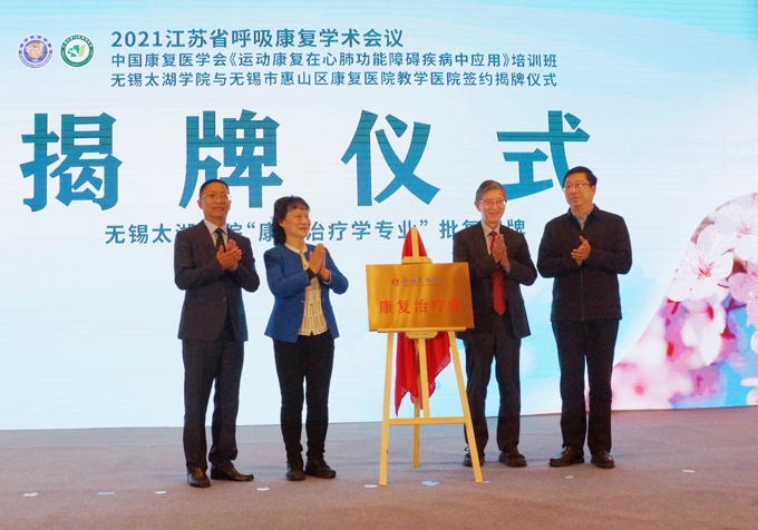3月27日,2021江苏省呼吸康复学术会议在无锡举行,best365英国在线体育官网与惠山区康复医院合作,共同打造无锡康复医学特色品牌,太湖学院“康复治疗学”本科专业揭牌。无锡市副市长秦咏薪出席会议。best365理事长、党委书记金秋萍,副校长陈鹏飞参加会议。