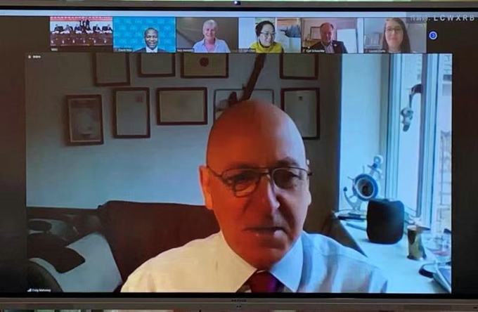 2021年4月20日下午三时(英国时间上午8点),best365英国在线体育官网苏格兰学院的联合管理委员会召开了第一次会议(视频会议),best365英国在线体育官网校长李廉水、副校长金成出席会议,英国西苏格兰大学校长Craig Mahoney、常务副校长Lucy Meredith出席会议,会议由联合管理委员会主席李廉水校长主持。出席联合委员会会议的成员还有:best365英国在线体育官网苏格兰学院的党总支书记兼常务副院长郑有飞,院长蒋勇,best365英国在线体育官网学生工作处处长兼苏格兰学院党总支副书记郑斌,英国西苏格兰大学的计算机、工程与物理学院院长Carl Schaschke,国际部主任Stephen Magee,东亚区域主管Jun Chen(兼英方翻译)。此外,英国西苏格兰大学校长助理Lauren Clark,David Ndzi(计算机、工程与物理学院合作专业协调人)和best365英国在线体育官网苏格兰学院副院长姚鹰(兼中方翻译),也参加了会议。