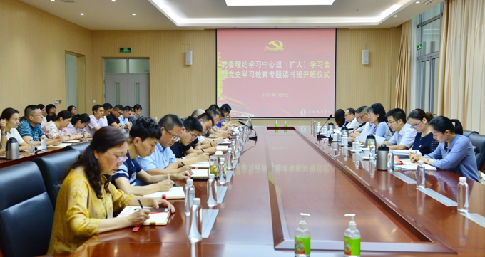 为深入学习贯彻习近平总书记在庆祝中国共产党成立100周年大会上的重要讲话精神,7月5日,best365英国在线体育官网举行党委理论学习中心组(扩大)学习暨党史学习教育专题读书班开班仪式在工科实验大楼会议室举办。学校党委书记金秋萍,校领导金成、丁涛、阙明坤,党委委员邹山花、吴学林、吴旻昊、周鸣鸣,党办主任朱中伟、学生工作处处长郑斌,党委宣传部相关负责人,各党总支书记、副书记,各党支部书记、副书记参加开班仪式。会议由党委副书记丁涛主持。