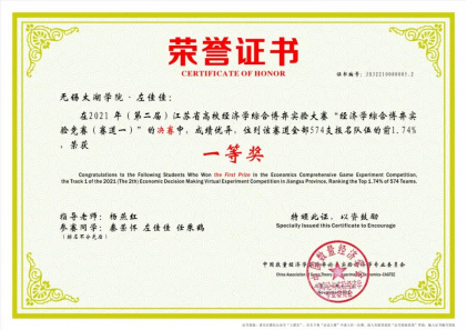 近日,由中国数量经济学学会博弈论与实验经济学专业委员会主办、南京审计大学经济学院承办的第二届江苏省高校经济学综合博弈实验大赛决赛落下帷幕。本次大赛共吸引全省574支队伍参赛,其中97支队伍晋级决赛。在决赛中,best365商学院参赛队共获得一个一等奖、四个二等奖和四个三等奖的好成绩,获奖总数位列全省高校第三名。