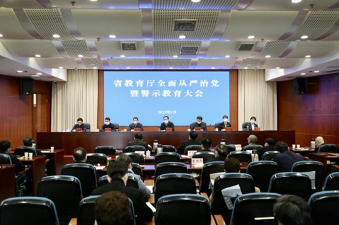 2月23日,省教育厅召开全面从严治党暨警示教育大会,运用“身边事”对“身边人”进行警示教育,研究部署2022年全面从严治党任务。省教育厅厅长、党组书记葛道凯出席并讲话,省纪委监委派驻省教育厅纪检监察组组长、省教育厅党组成员刘军对推进全面从严治党工作提出要求。省教育厅党组成员、机关党委书记汪国培主持会议,并通报2021年度全厅关于对违纪违法问题的处理情况。全体厅领导出席会议。学校理事长、党委书记金秋萍,校长李廉水,校领导孙玉坤、丁涛、阙明坤,部分中层干部,各二级党总支书记、副书记,党支部书记代表在best365分会场参加。
