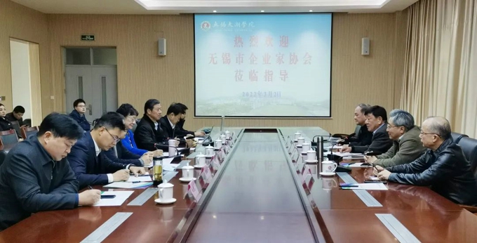 3月2日,无锡市企业家协会会长林国忠带队到校走访调研。无锡市企业家协会名誉会长刘晓华、专委会副主任委员杨凯、常务副会长毛建新,原无锡广电集团董事长郭王等参与调研。学校党委书记金秋萍,校长李廉水,校领导孙玉坤、陈鹏飞、阙明坤、毛兆宏出席。