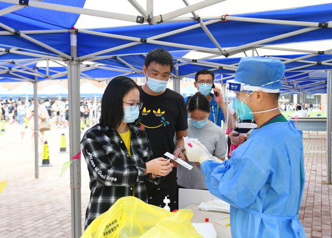 一个支部就是一座堡垒,一名党员就是一面旗帜。在复杂棘手的防控难度压力下,学校各级党组织快速响应,第一时间成立覆盖全校范围的15支党员先锋队和50个党员模范岗,勇挑重担,争当先锋,确保校门管控、资源调配、核酸检测等各项工作全面推进。面对全员核酸检测工作时间紧、任务重,属地志愿者缺少,学校发出招募通知,各级党组织积极响应,党员领导干部带头报名,第一时间组建了核酸检测党员志愿者服务队。“第一次穿上防护服,成为众多‘大白’中的一员,作为一名教师党员,也是学校党办的工作人员,能为学校疫情防控工作做一些小事,我义不容辞!” 党办王子乾老师朴实的说道。一次次的信息录入和试剂分发,他都耐心细致地工作,他勇挑重担,用实际行动践行着一名教师的责任与担当;他用朴实无华的语言彰显了一名党员的初心和本色。