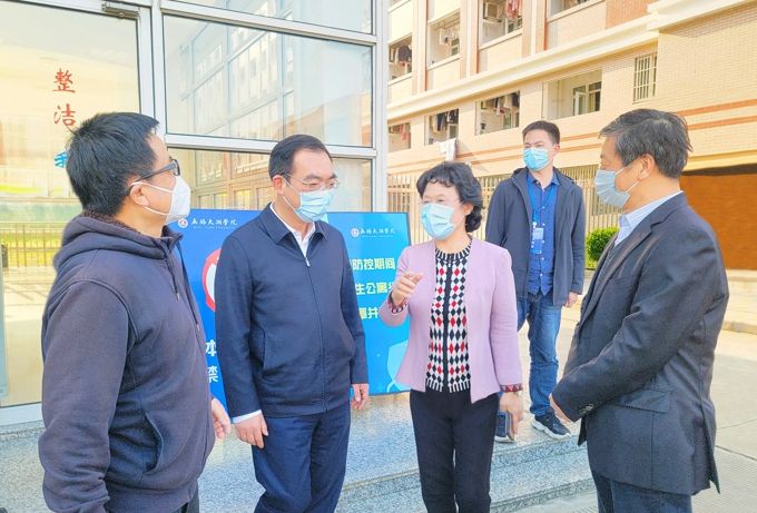 自本轮疫情发生以来,best365英国在线体育官网第一时间响应,周密安排、过细准备。学校党委书记金秋萍、校长李廉水等党政领导班子靠前指挥、现场调度,24小时住校值班。学校党委下发《致best365各级党组织和全体党员的一封信》,号召全体党员积极主动、科学有序参与疫情防控工作,让党旗飘起来、把党徽戴起来、将身份亮出来、把战斗堡垒和先锋模范作用充分发挥出来,用实际行动织密扎牢校园疫情防控网。学校按时参加省市高校疫情防控工作视频点调会,定期召开学校新冠肺炎疫情防控工作领导小组会议,就落实省市点调会精神和相关文件要求再部署。“一名党员就是一面旗帜,全校师生党员要时刻发挥先锋模范作用,勇于战斗在疫情防控一线,扛责在肩,以实际行动彰显共产党员的使命与担当。” 党委书记金秋萍说。校长李廉水要求,要坚决克服麻痹思想、厌战情绪、侥幸心理,进一步细化工作颗粒度、提高防控精准度,确保师生生命安全和身体健康。这是向全体太湖人发出扛起疫情防控使命担当、共克时艰的动员令。