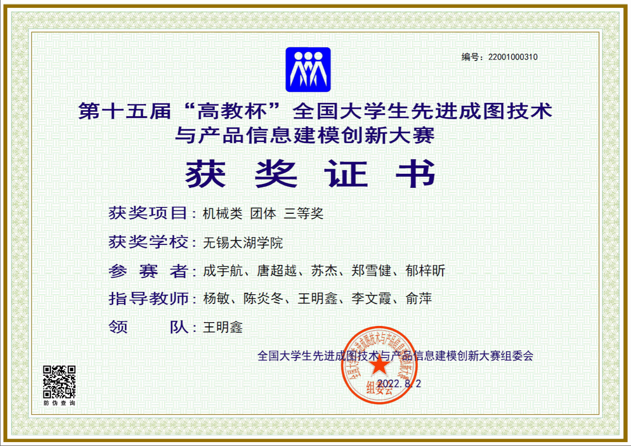 磨剑四载,终获成功。智能装备工程学院学子在第15届全国大学生先进成图技术与产品信息建模创新大赛中荣获国赛团体三等奖,学生在个人全能中获得国家二等奖1项、三等奖2项。该项比赛秉承“以赛促教、以赛促学、以赛促改”宗旨,旨在培养学生的工匠精神,激发创新意识,探索图学发展方向,创新成图载体的方法与手段,全面提高大学生的图学能力,为中国制造走向中国创造催生和助长大量优秀人才。2018年被中国高等教育学会列入全国普通高校学科竞赛排行榜,2021年位居全国普通高校大学生竞赛排行榜第24位。由于规模大、水平高、参赛人数多,被誉为图学界的“奥林匹克”。
