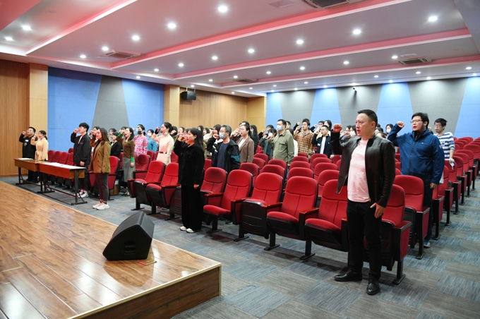 艺术学院院长张秋平教授围绕《怎样做一名应用型本科院校的好老师》为新教师作专题讲座。教务处处长周志平勉励所有新教师坚持终身学习,努力在工作空余时间提升自我。科技处陈亚兰老师作科研项目申报与经费使用培训,慕海杰老师作人事制度的解读。杨晨晨老师作为江苏省青蓝工程中青年学术带头人、“滨湖之光”高层次创新人才,以系统解剖学为例为新教师带来了一场实操教学讲座。参与培训的新教师在党委委员、组织人事处副处长吴学林的带领下集体宣誓,表示将履行教师职业道德,树立高尚师德形象,承担时代赋予教师的神圣使命,努力成为一名有理想信念、有道德情操、有扎实学识、有仁爱之心的人民教师。(撰稿:冯兰珊;摄影:陈镭;审核:吴学林、薛德祥)