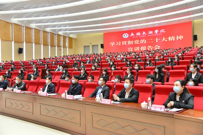 党委书记金秋萍指出,朱爱勋副书记的宣讲报告从多个方面对党的二十大精神进行了系统阐释和深入解读,为全校更好学习领会、深入把握党的二十大精神提供了权威辅导。她要求,全校上下要迅速掀起学习宣传贯彻党的二十大精神的新热潮,要“入脑入心”学、“深入人心”讲、“真抓实干”做,切实把学习成果转化为推动学校工作的思路举措,找到与无锡城市发展同频共振的结合点,更好服务无锡地方经济社会高质量发展。(撰稿:康亚华;摄影:朱红华,陈镭;审核:薛德祥,许松)