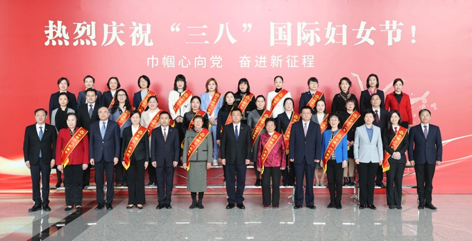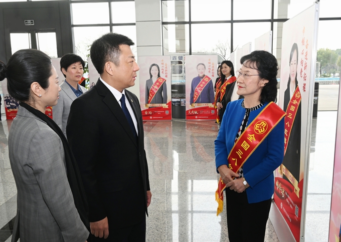 当天上午,市民中心一楼大厅里,写有“热烈庆祝‘三八’国际妇女节”的红色展板十分醒目。荣获国家级和省级荣誉的先进妇女集体和个人代表身披缎带、神采奕奕。杜小刚来到先进代表中间,向大家送上节日问候,并详细询问当前工作情况,勉励大家在各自岗位上继续开拓进取、奋发向上,以“四敢”实际行动,在无锡高质量发展中留下温暖闪光的女性印记,为全面推进中国式现代化无锡新实践贡献巾帼之力。