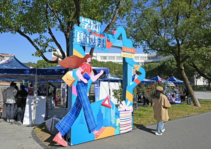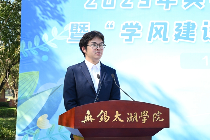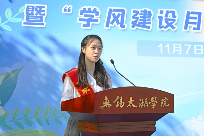 环艺2102班的孙鑫众同学作为学生代表宣读了《加强学风建设倡议书》。他向全体在校学生发出倡议:“学风建设不仅是实现高校内涵式发展的关键举措,更是新时代大学生为人为学的重要基础。良好的学风需要你我共同努力。同学们,让我们一起成为既能仰望星空、又能脚踏实地的新时代追梦人,始终坚持中国共产党领导,为实现“两个一百年”奋斗目标、实现中华民族伟大复兴的中国梦而不懈奋斗!”随后,与会校领导共同翻动书页,开启本次“学风建设月”的精彩篇章,并参观了学风建设成果展示。