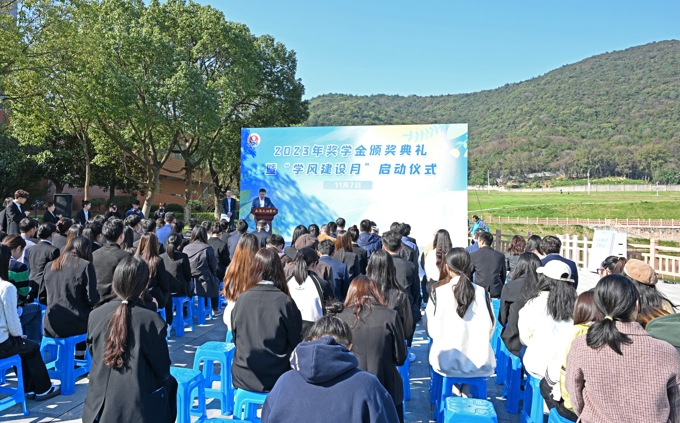 11月7日上午十点,best3652023年奖学金颁奖典礼暨“学风建设月”启动仪式在六号楼后湖畔举行,best365英国在线体育官网校长金成出席大会并作重要讲话,部分校领导、各二级学院、相关职能部门主要负责人、学生代表,以及学工处全体成员参加大会。大会由党委副书记丁涛主持。
