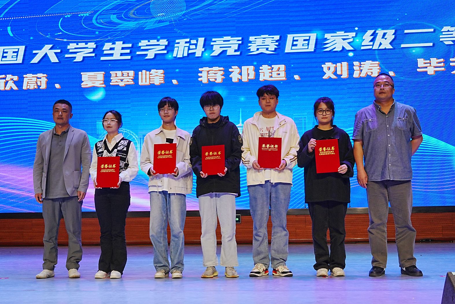 随后,活动进入颁奖环节。校团委书记陈朕为在学科竞赛中表现突出的优秀指导老师颁奖。副校长吴健荣、教务处处长邹山花、党总支副书记沈峰、副院长王华君以及通信专业主任尹嵘,分别为在全国大学生学科竞赛中获得国家级一、二、三等奖的学生颁发了“竞赛之星”奖项,表彰他们在学科竞赛领域的卓越表现。