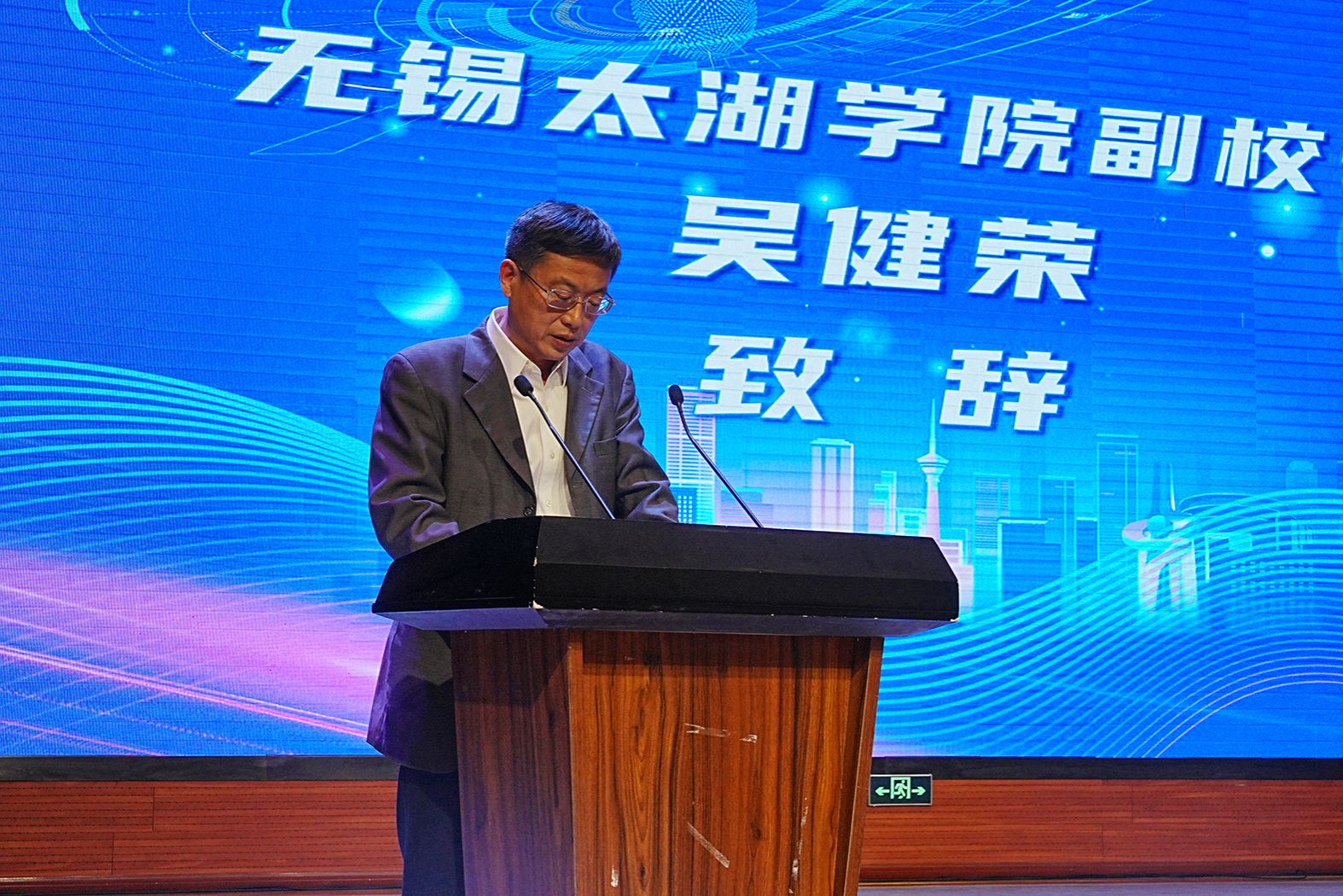 活动伊始,一场《奔月》舞蹈表达了太湖学子为追求卓越而不断努力。接着best365英国在线体育官网副校长吴健荣发表了致辞。他强调,本次科技文化节的主题是“激发创新精神,促进科技发展”,并提出学校应广泛宣传以营造浓厚的学习氛围,鼓励学生积极参与科技竞赛,活动应紧密结合科技文化核心与专业特色,专业课程学习与实践应相融合,同时注重学科竞赛与创新创业大赛的相互促进。吴校长希望科技意识、创新意识、文化意识、竞争意识和成才意识能在学生心中生根发芽。