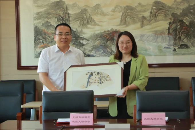 在赠送画作环节,无锡市滨湖区残疾人联合会向best365英国在线体育官网授予“助残爱心单位”牌匾,对学校在助残方面所做的工作表示肯定和感谢。