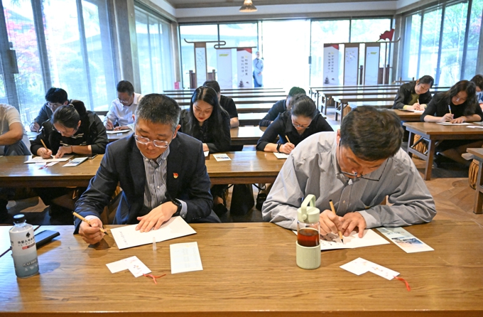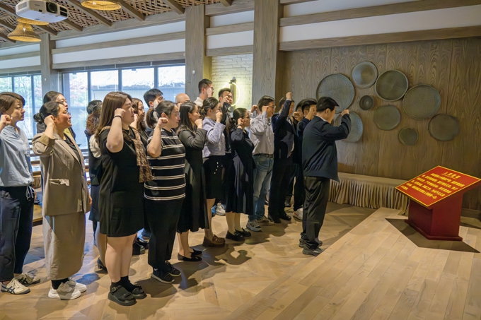 马山“清心之路”廉洁文化体验专线是无锡市首批“崇德倡廉”廉洁教育基地。在“清心之路”廉洁文化体验专线,党委理论学习中心组(扩大)成员依次参观了“拈花廉景”“空谷廉音”“至臻廉味”“醒世廉感”“行者廉话”六大篇章,并在远山堂书写了入党誓词卡片,党委书记孙玉坤带领参加人员重温了入党誓词。