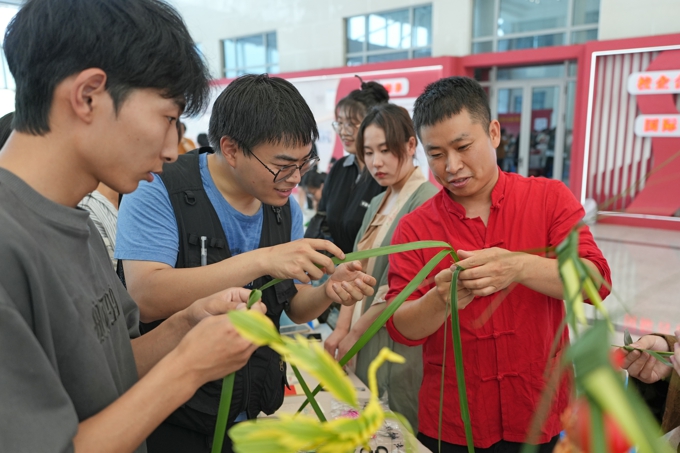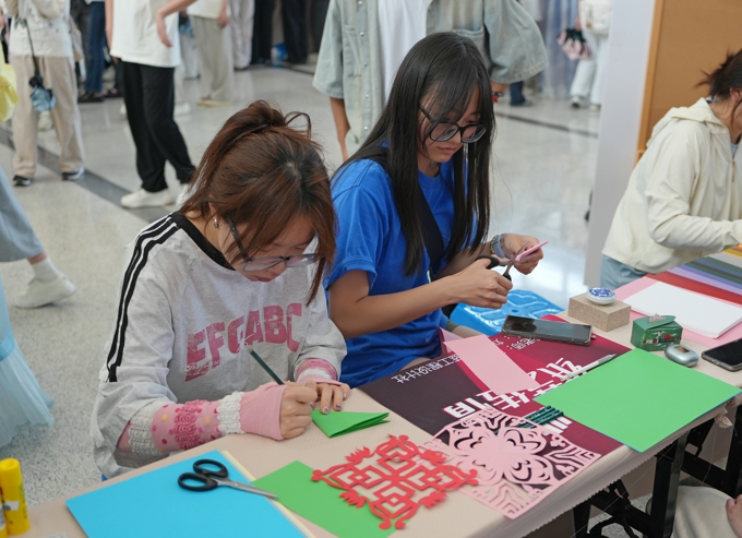 活动创新采用“宫商角徵羽”五音分组形式,在工科大楼一层精心布置了五大非遗体验区,涵盖惠山泥人、棕榈草编、漆扇、剪纸、扎染等展区,每一展位均有非遗传承人现场演示并指导学生体验。活动还设置了“花海诗词擂台”与“非遗知识竞答”互动环节,12名师生获奖。(撰文:夏悦;摄影:孙安,李文钧;审核:许松,刘文社)