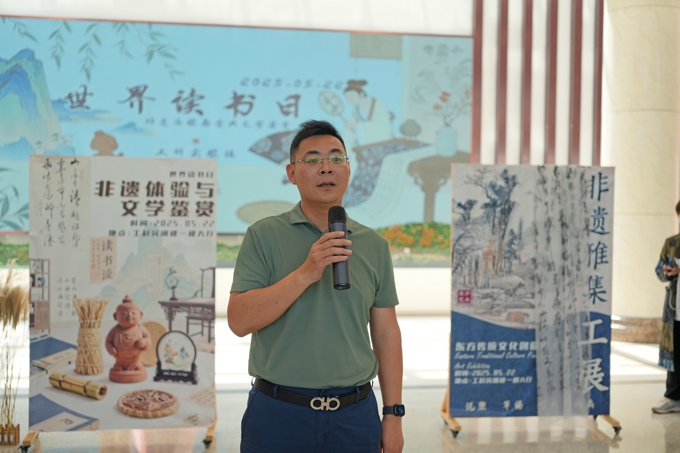 本次活动是第十一届校园读书文化节的组成部分之一。陈鹏飞在开幕致辞中强调,非物质文化遗产是中华传统文化的重要组成部分,是中华民族的精神命脉,承载着历史与传统、连接着过去与未来。近年来,学校高度重视校园文化建设,将非遗保护传承作为文化育人的重要手段。他希望,通过本次活动开展,进一步培养学生对中华优秀传统文化的兴趣,增强文化自信,共同推动非遗文化的传承和发展。