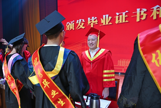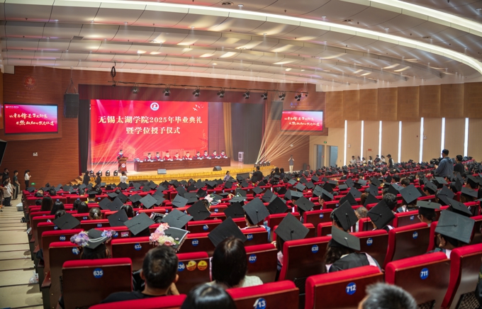 在5829名毕业生即将扬帆远航之际,金成向学生们送上临别赠言。他强调,当前我国正处于实现中华民族伟大复兴的关键时期,是青年人大显身手、大展宏图的好时候。他希望,即将走上社会的广大“太湖学子”,要以“咬定青山不放松”的定力,做民族复兴的担当者,在强国建设、民族复兴的历史潮流中确立人生目标,以“一生办成一件事”的执着,在各自岗位上成就不凡事业;要以“敢教日月换新天”的锐气,做创新发展的开拓者,永葆“太湖后浪”的闯劲,在发展新质生产力的赛道上敢为人先;要以“千磨万击还坚劲”的韧性,做攻坚克难的奋斗者,作出太湖学子对“艰难方显勇毅”最铿锵的回答;要以“一枝一叶总关情”的情怀,做美好生活的建设者,作出“自强不息、经世致用”校训精神的最生动诠释;要以“青山一道同云雨”的格局,做文明互鉴的践行者,站在国际舞台,讲好中国故事、传递太湖温情。他寄语广大毕业生,希望大家带上母校的祝福出发,母校将永远是学子的坚强后盾和精神家园。