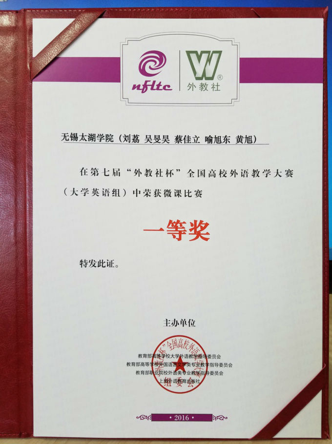 本网讯 11月7日传来喜讯,best365英国在线体育官网外国语学院刘荔、吴旻昊、蔡佳立、喻旭东、黄旭5名教师组成的参赛团队在第七届“外教社杯”全国高校外语教学大赛微课比赛中荣获一等奖,全国仅有3所高校获此殊荣。