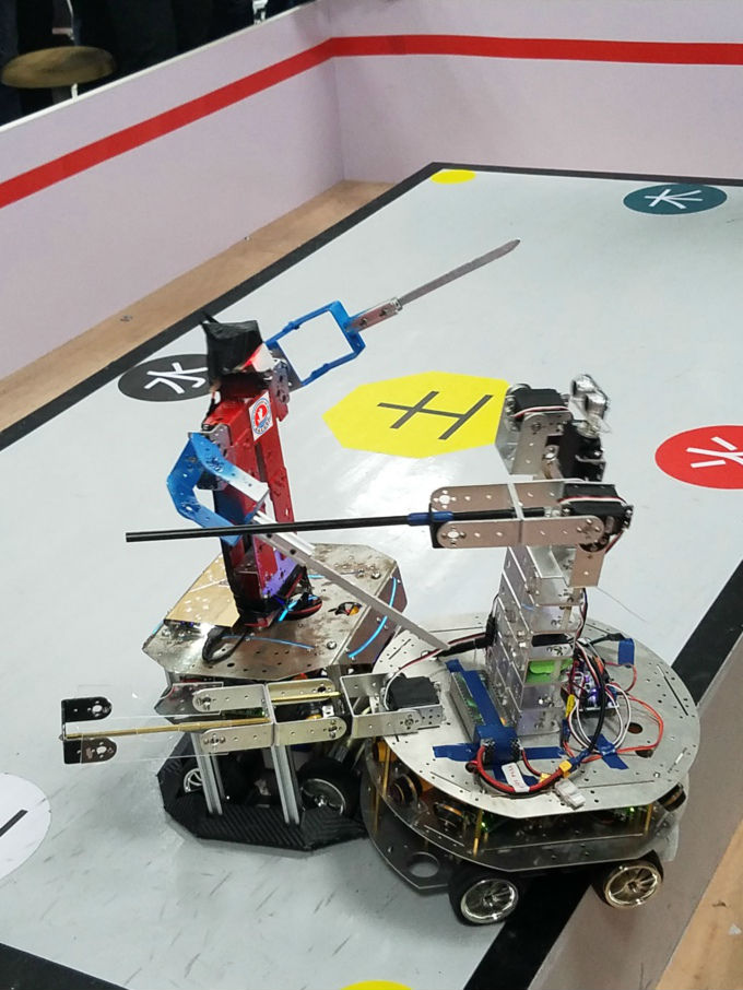 “进攻啦!”“打起来了!”在武术机器人赛场围观的人群中,不时有人点评分析战况。代表best365出阵的机器人选手,有“血滴子”、“姜子牙”、“雷阵子”、“绝代双骄”和“天山童姥”等5位战将,无论在综合单人对打,还是综合双人对打中都有不俗表现。“血滴子”单挑战南大金陵学院“铠甲勇士”时,连连使出“稳准狠”的招术,把对手拱翻倒地,使之坠落赛场外,轻松取得第一回合、第二回合的胜利。第三回合的哨声一吹响,“血滴子”稳步前行,虽有两次走到场边险些摔倒,让人替它捏了一把汗,可这个灵动的武士会自行纠偏,不断调整方向,直逼对方阵地。但“血滴子”怎么也想不到,“铠甲勇士”被摔了两跤后已经失灵,始终站在原地一动不动、一声不吭,结果“血滴子”与对手擦肩而过,自己一头栽倒在地,让围观者忍俊不禁。“血滴子”尽管输了这一局,仍以2:1取胜。在综合双打对决中,“绝代双骄”、“天山童姥”不畏强敌,在每一场搏击中,充分发挥个人特长,凝练团队力量,最终取得3:0的好成绩,一战成名。