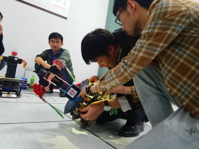 选手在精心调试机器人