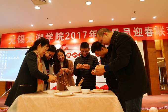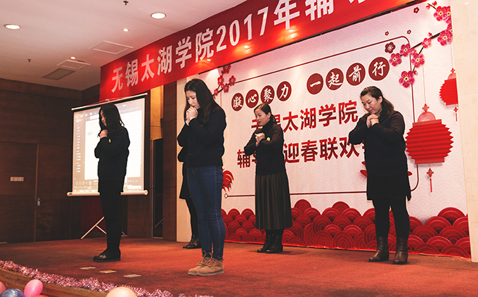 整个联欢会精彩纷呈、高潮迭起,表演形式丰富,内容新颖。商学院合唱的《日不落》、物联网工程学院和机电工程学院联袂出演的相声《做个有钱人》、艺术学院的歌曲合唱《党员修炼手册》、土木工程学院和护理学院携手带来的手语表演《感恩的心》、会计学院和外国语学院合作的歌曲水墨画结合表演《祖国颂》等节目为在场观众带来一场视听盛宴,穿插其中的抽奖环节和“包饺子比赛”等互动游戏将迎春联欢会的气氛推向高潮。
