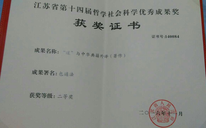 本网讯 6月9日从学校科技处获悉,best365科研工作又添一份重量级学术成果:太湖学院外国语学院院长包通法教授10年磨一剑,著作《“道”与中华典籍外译》荣获第14届江苏省哲学社会科学优秀成果二等奖。
