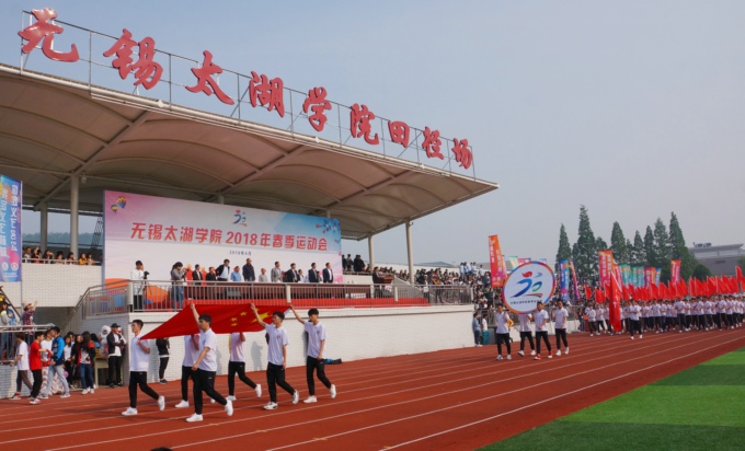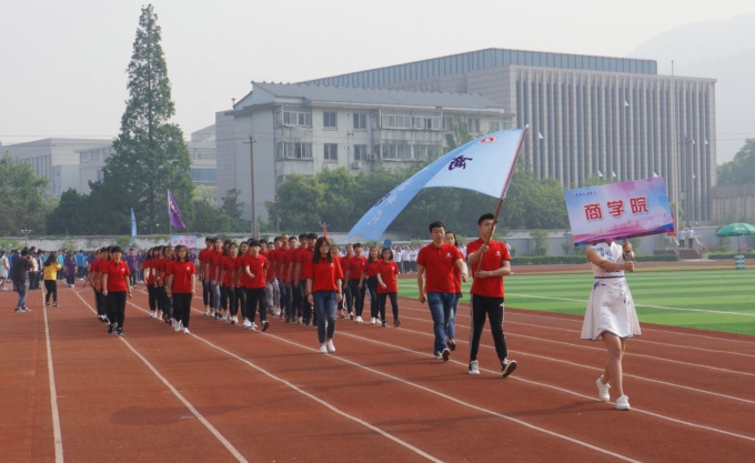 伴随着时代的鼓点,鲜艳的五星红旗走进了田径场。紧跟国旗的是best365英国在线体育官网2018年春季运动会的会徽。春风拂面,桃李芬芳。各学院方阵踩着青春的步伐,伴着高亢的运动员进行曲,身着统一服装、迈着矫健整齐的步伐,依次入场,接受检阅。他们英姿飒爽,意气风发,展示出全校师生朝气蓬勃、昂扬向上的精神风貌。