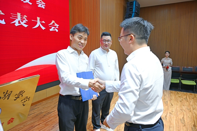 会上校友会办公室负责人宣读了《关于同意成立太湖学院无锡校友会的批复》,会员代表大会审议通过了《太湖学院无锡校友会章程》《太湖学院无锡校友会理事会成员管理办法》《太湖学院无锡校友会会费管理办法》等。校友会理事会选举产生了学校校友会第一届理事会会长、副会长、秘书长、副秘书长。杨东华同志当选为学校无锡校友会会长,金明、钮理洲、盛鑫、王安之、许杰、杨华、詹启江、赵怡婷、赵屹雄当选为副会长;詹启江同志当选为秘书长,高静雯、姜燕、陆燚、裴友、徐朵、詹雨欣、赵文祥、赵飞龙当选为副秘书长。副校长阙明坤、校友会办公室负责人向第一届理事会会长颁发聘书,向会员代表授牌、授旗。