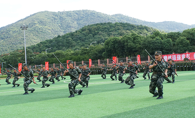 2018级新生开学典礼暨军训成果汇报表演大会在庄严的国歌中拉开帷幕,近3500名新生接受领导检阅,副校长何宏金、陈鹏飞检阅军训方阵,对全体新生致以亲切的慰问。大会进行了分列式表演,场面宏伟,气势磅礴,同学们英姿飒爽、意气风发,坚实有力的步伐,高昂嘹亮的口号,充分展示了太湖学子昂扬的斗志、饱满的激情和亮丽的青春。男女混合擒敌拳、战术动作、应急棍表演稳健有力,挥洒自如,将军训大会的气氛推向高潮,博得了全场热烈掌声。