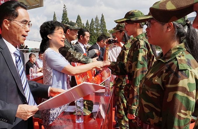学校党委书记金秋萍发表了热情洋溢的讲话。她首先代表学校向部队首长及全体教官表示崇高敬意,向来自全国27个省、市、自治区的新生们表示热烈欢迎。金秋萍书记说,当前太湖学院正在朝着建成特色鲜明、国内一流的应用型大学的目标前行。学校在发展过程中始终坚持“学校为学生而建,学生为学习而来”的理念,坚持“自强不息,经世致用”的校训,不断强化内涵建设,创新人才培养模式,优化学科专业结构,主动对接无锡经济,已经培养了数万名高素质、应用型、创新型人才,为无锡经济社会发展作出了重要贡献,赢得了良好的社会评价和声誉。