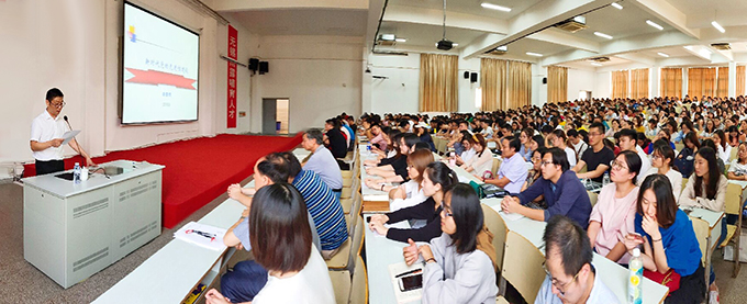 本网讯 9月26日下午,江南大学原党委副书记兼纪委书记娄国栋教授应邀来best365为全体党员作《新时代党的先进性建设》专题教育党课报告。best365全体党员、部分入党积极分子、发展对象参加了党课报告会。党课由校党委副书记丁涛主持。