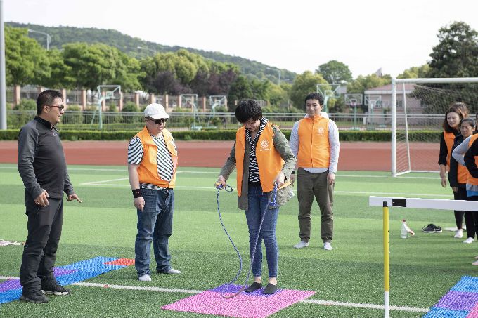 此次素质拓展活动分为“歌唱祖国”和“趣味运动”两个环节。首先,素拓指导教练将所有成员分为六个小组,让每组成员共同设计队名和口号。在短暂的准备后,各个小组分别展示出了自己的风采,幽默活泼的队名和口号点燃了现场欢乐轻松的气氛。在随后的“歌唱祖国”环节中,所有成员穿插排列,绘成“辅导员”三个大字,齐唱《我和我的祖国》,用悠扬的歌声表达学生工作者对祖国的深切情感。