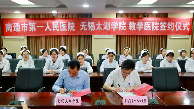 据悉,本次签约,学校将聘请南通第一人民医院医教水平高的医护人员作为护理学专业的教授和副教授,承担太湖学院护理学临床教学和实习任务。学校将协助医院提高医疗、教学、科研等业务水平,在师资培训、人才培养和实验室使用、图书资料等方面给予全力支持。根据医院需求,学校实行“订单式”培养,推荐优秀毕业生实习就业。南通市第一人民医院每年分期分批合理安排护理学专业学生进行临床见习和实习,选派有丰富教学、临床管理经验的医师、护师,负责太湖学院的临床教学和实习带教。