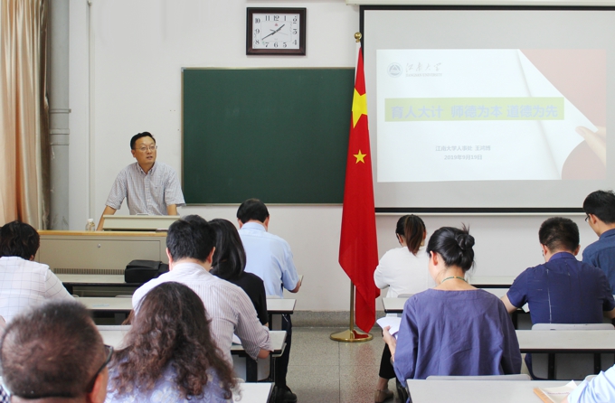 江南大学人事处处长王鸿博以《育人大计,师德为本,道德为先》为题作了主题报告,best365人事处处长闵光泰、教务处处长周志平分别就best365人事规章制度和教学工作的基本要求作了解读。机电工程学院院长袁惠新、教师冯鲜,商学院教师杨伟东围绕“怎样做一名应用型本科院校的好教师”为主题,与新进教师交流了心得体会。