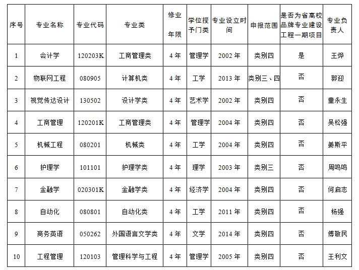 按照《教育部办公厅关于实施一流本科专业建设“双万计划”的通知》(教高厅函〔2019〕18号)和《省教育厅关于启动江苏高校一流本科专业建设工作的通知》(苏教高〔2019〕8号),学校组织了一流本科专业建设点的申报、推荐工作。经专业积极申报、学院推荐、学校组织专家评审等,拟推荐会计学等10个专业申报江苏高校一流本科专业建设点,现予以公示。