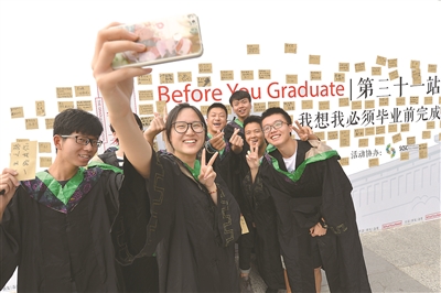南农大毕业生在留言板前自拍留念。 陈 俨 万程鹏摄