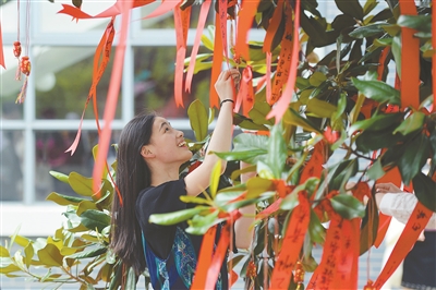 晓庄学院将福袋挂在校园玉兰树上。 陈 俨 万程鹏摄