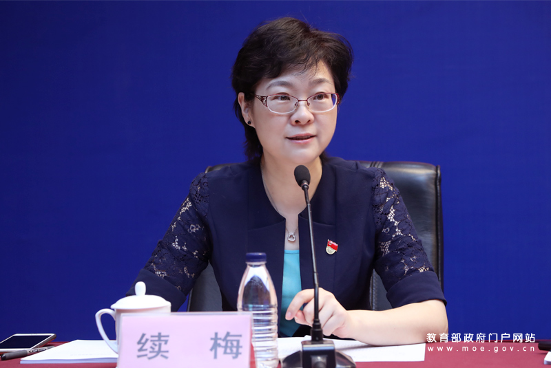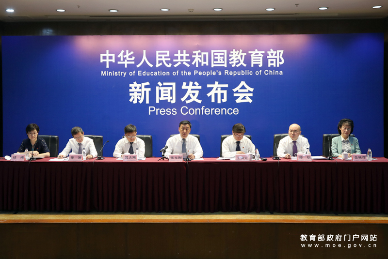 教育部新闻发言人续梅主持发布会。(中国教育报记者 张劲松/摄)